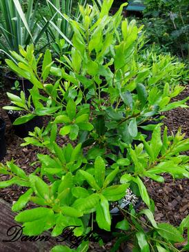 Thick glossy leaves, with fabulous spicy fragrance when bruised, and the single petal white blossoms are simply elegant.